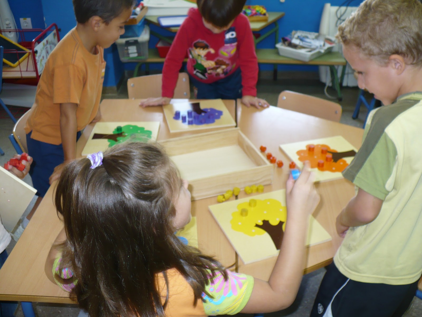 Este es uno de los juegos estrella, se llama quita y pon, como su nombre indica consiste en poner y quitar fichas según lo que salga en el dado. Tenemos dos juegos de este tipo en clase y pueden jugar casi todos. Aprenden a sumar y restar y más cosas que he explicado antes. También hay un dado con colores, es otra modalidad más sencilla para aquellos que le resulte más complicado añadir fichas según un número dado, pero de esta forma también se identifican distintos colores. Observar las distintas expresiones que los niños manifiestan mientras apreden jugando.